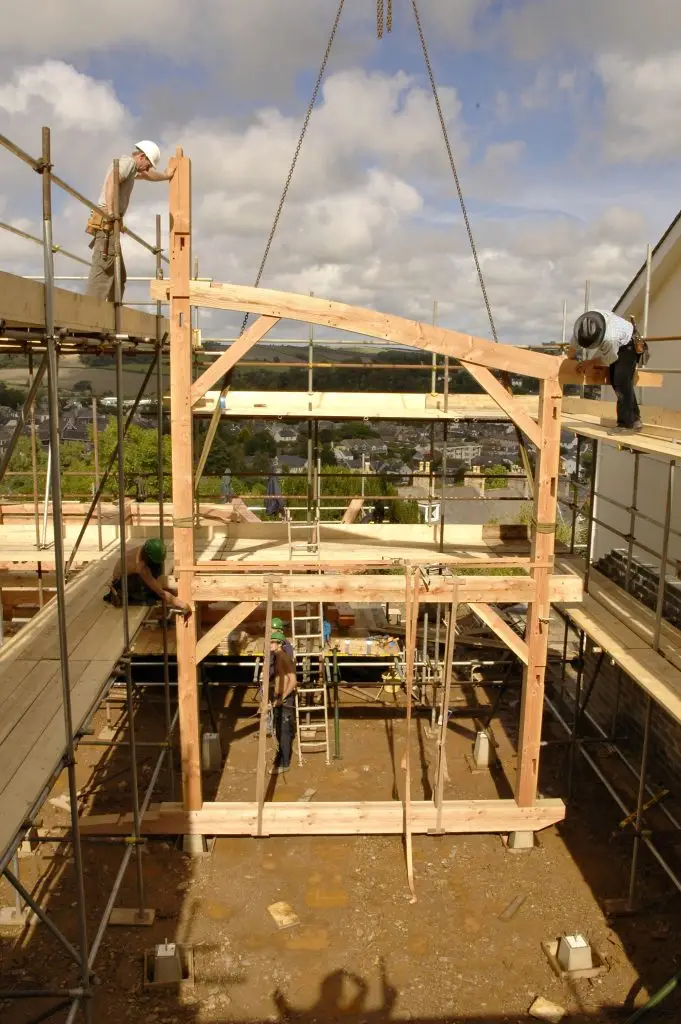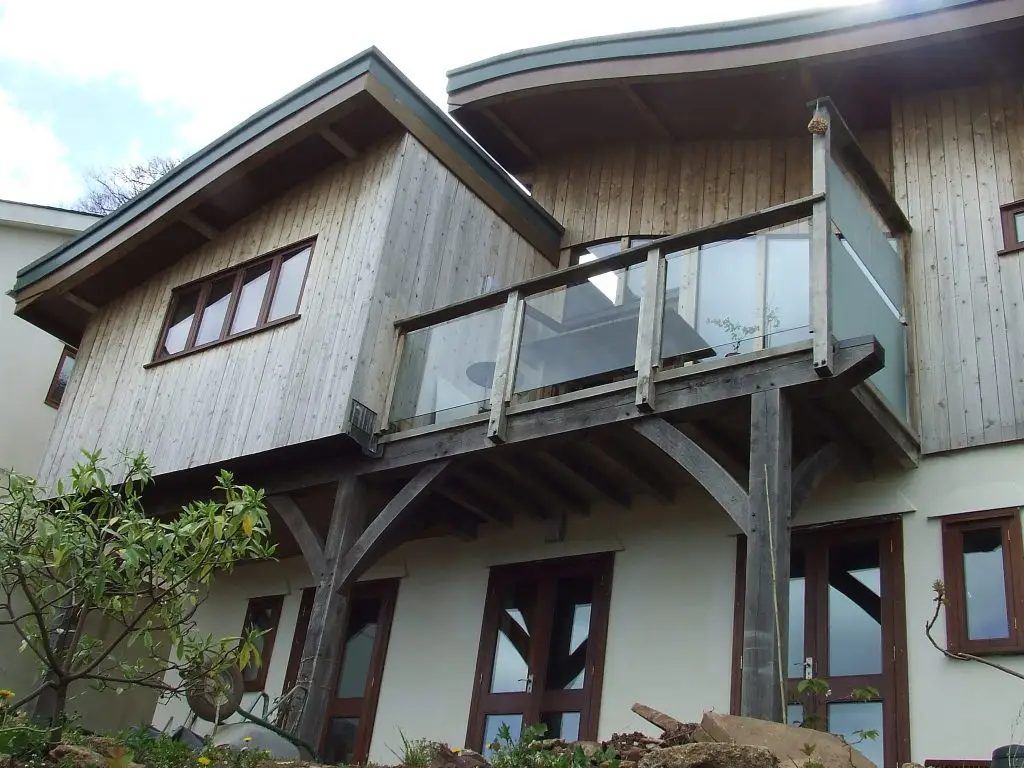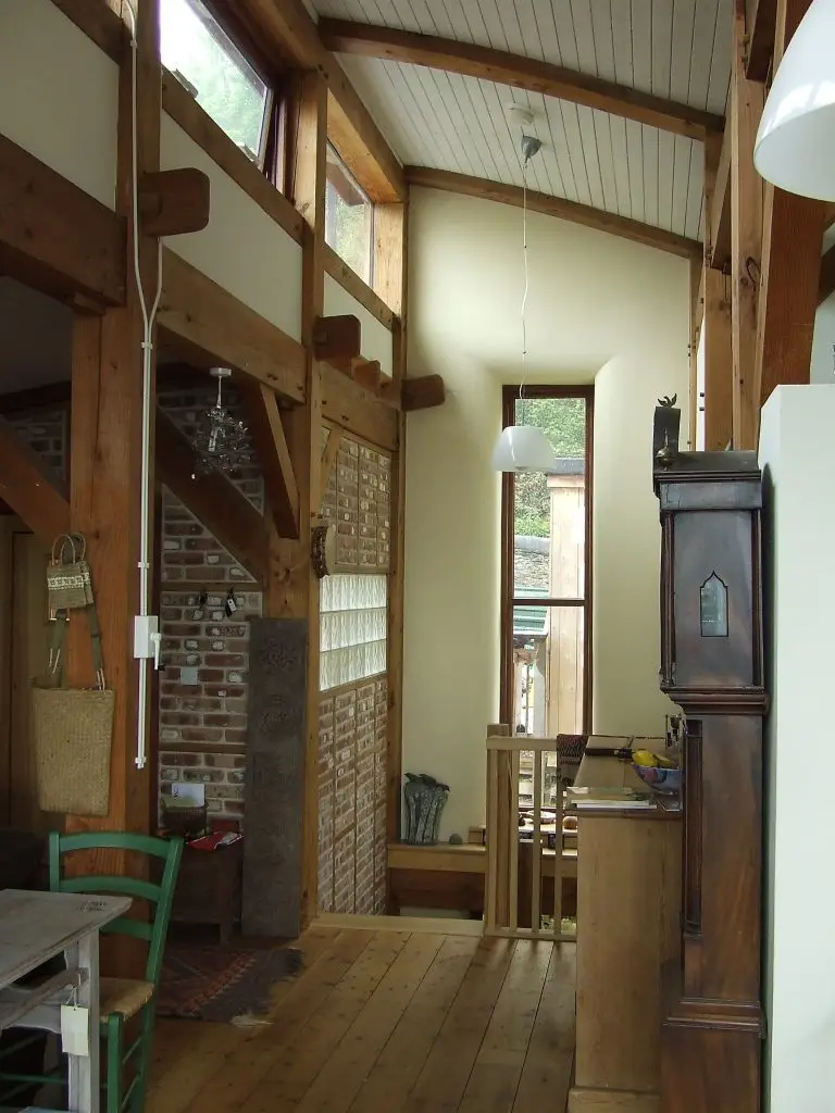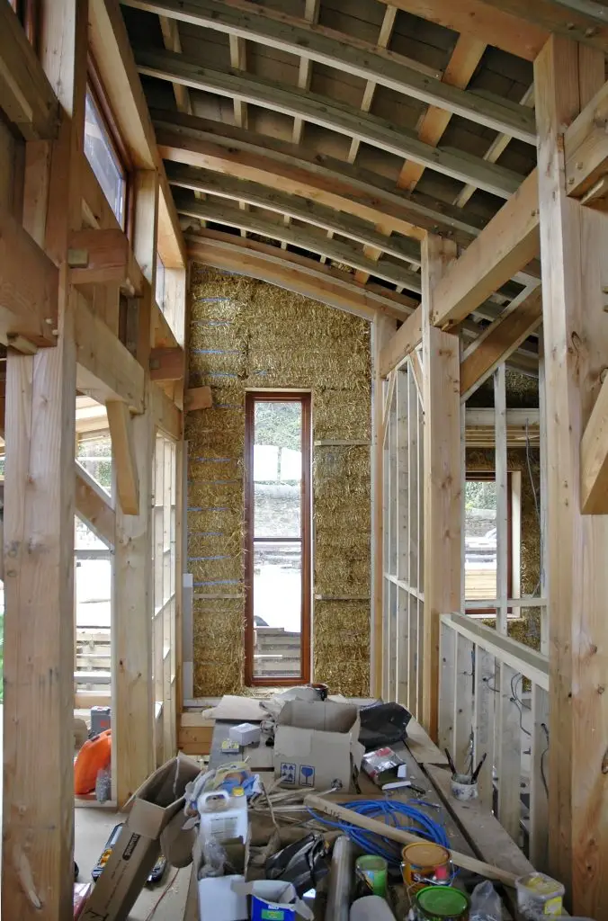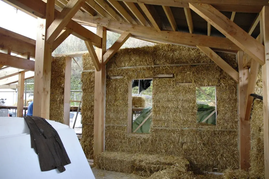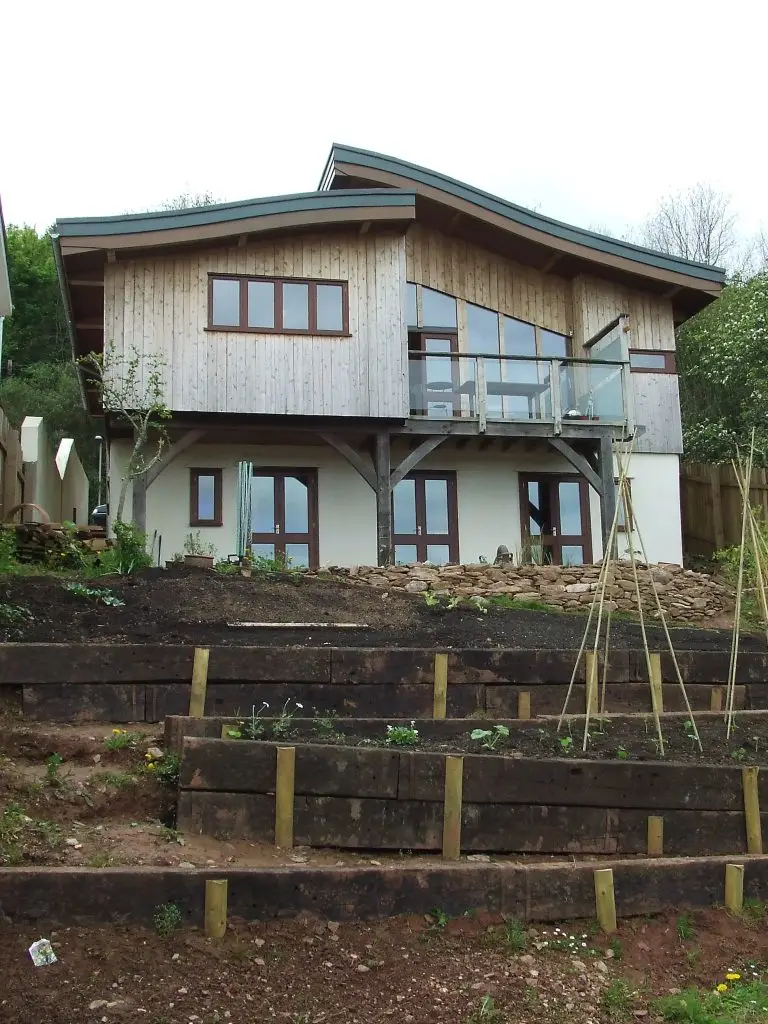 We worked very closely with our client, Jim Carfrae, who wished to carefully build a very ecologically friendly affordable house on a sloping site near Totnes, Devon, using straw bales and a Douglas Fir primary frame. The genesis of this building took lots of time, but meant that it was very well considered and better for it. It’s an excellent example of how low impact materials can be used reliably in affordable modern buildings. Jim was so invested in measuring the performance of the straw walls that he built in sensors to monitor the performance of the building, particularly concerning moisture levels which can terminally damage straw bale construction. He used his data and research to gain a PhD, and has since consulted on similar projects. We enjoyed working with Jim in the development of these ideas and techniques and have continued to present the merits of the simple combination of structural primary frames to support the floors and roofs with straw bales walls successfully with other clients, and are keen to build more like it.