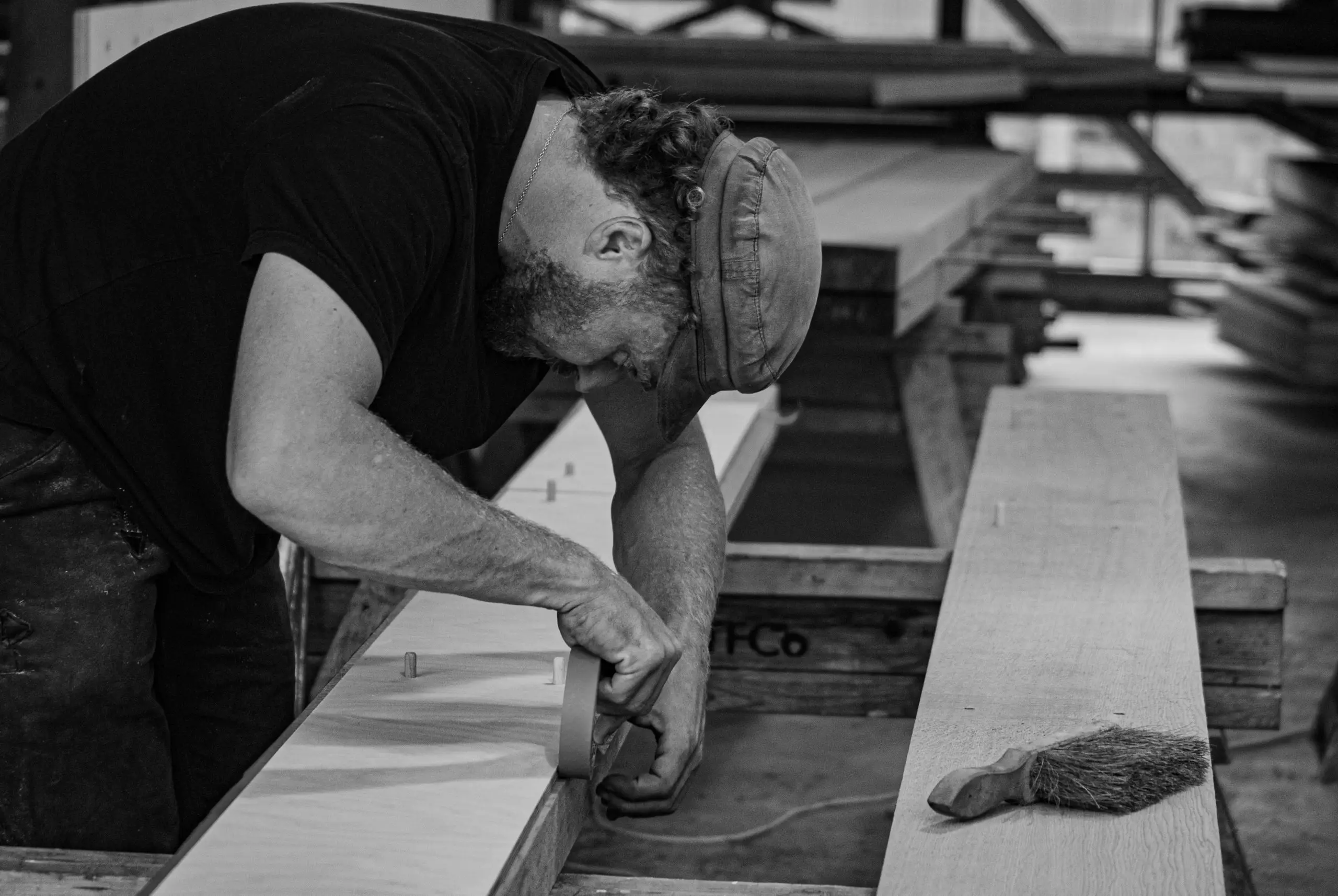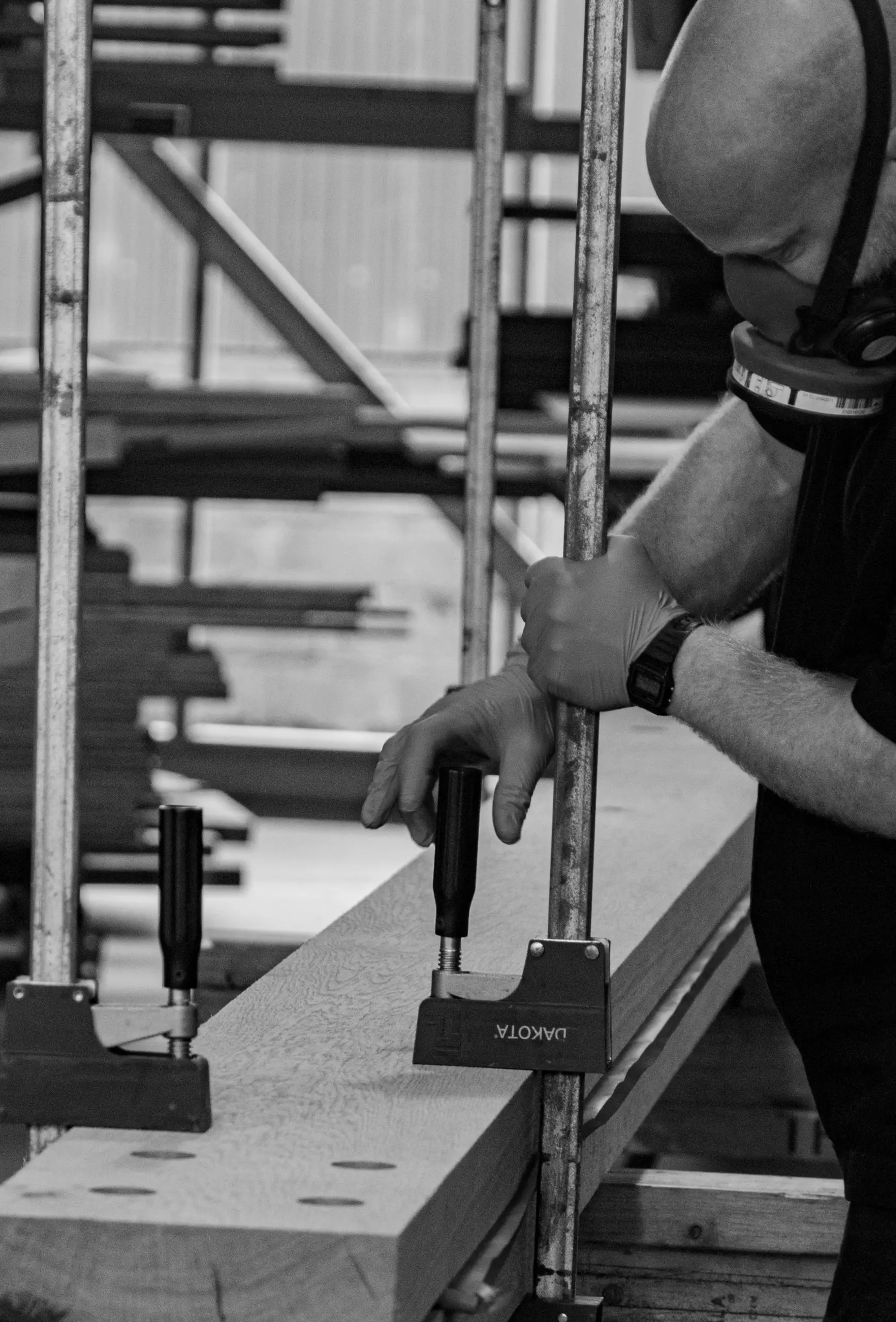 Due to the nature of the construction and the desired clean sawn finishes to the exposed oak elements, air dried oak was sourced in waney edged boards and re-sawn to give a fine finish and provide consistent dimensional stability within the structure. Great care was taken during the layup and carpentry work to protect the timber faces and every element was shrink wrapped prior to site installation. TFCo was responsible for the detailed design, specification, manufacturing and installation of the laminated oak frame, steel fabrication and sheathed panels.