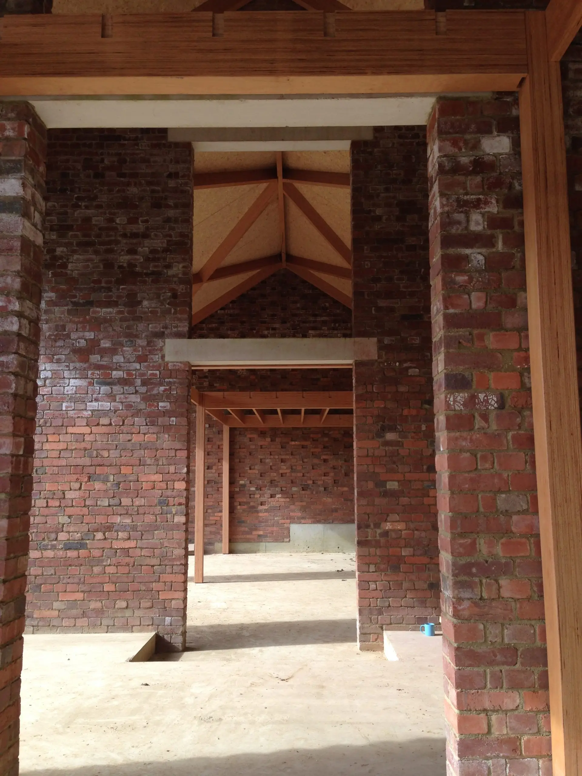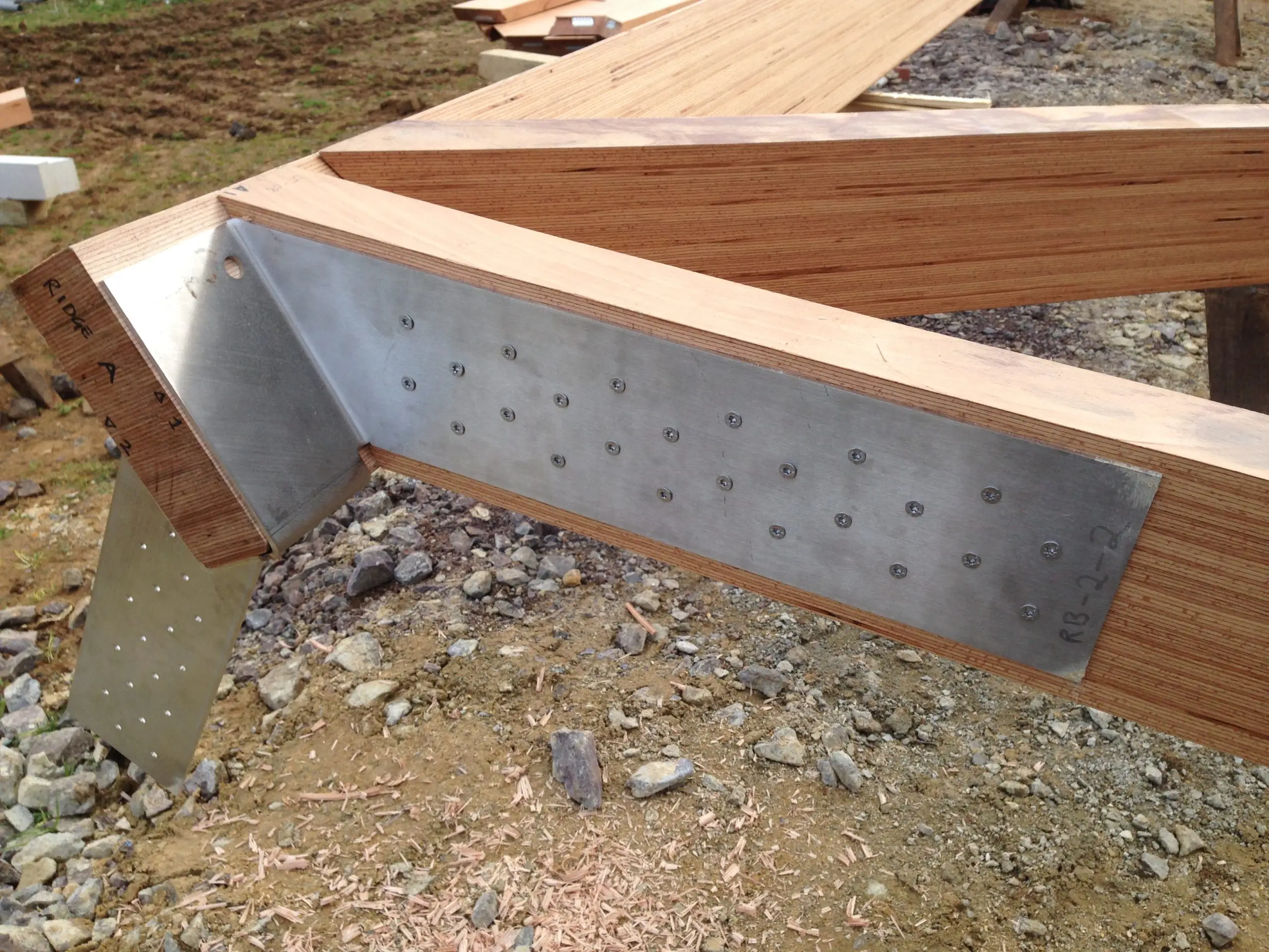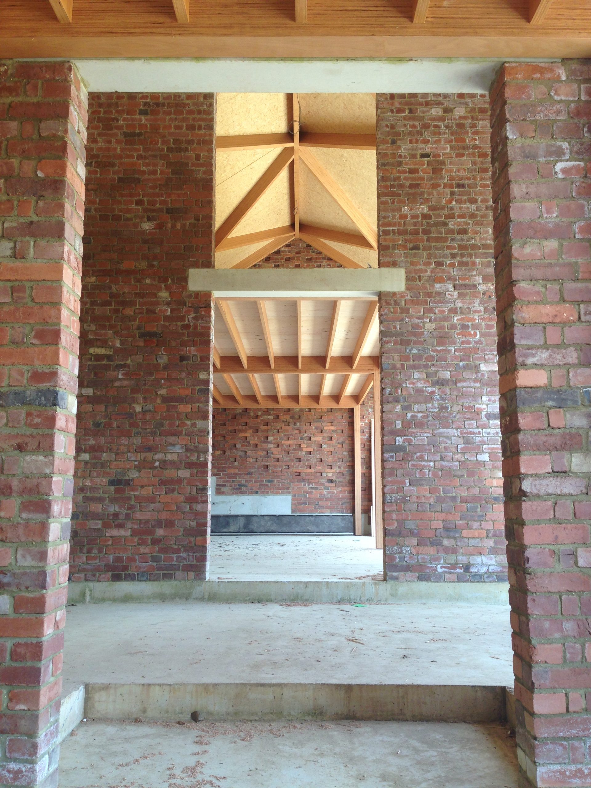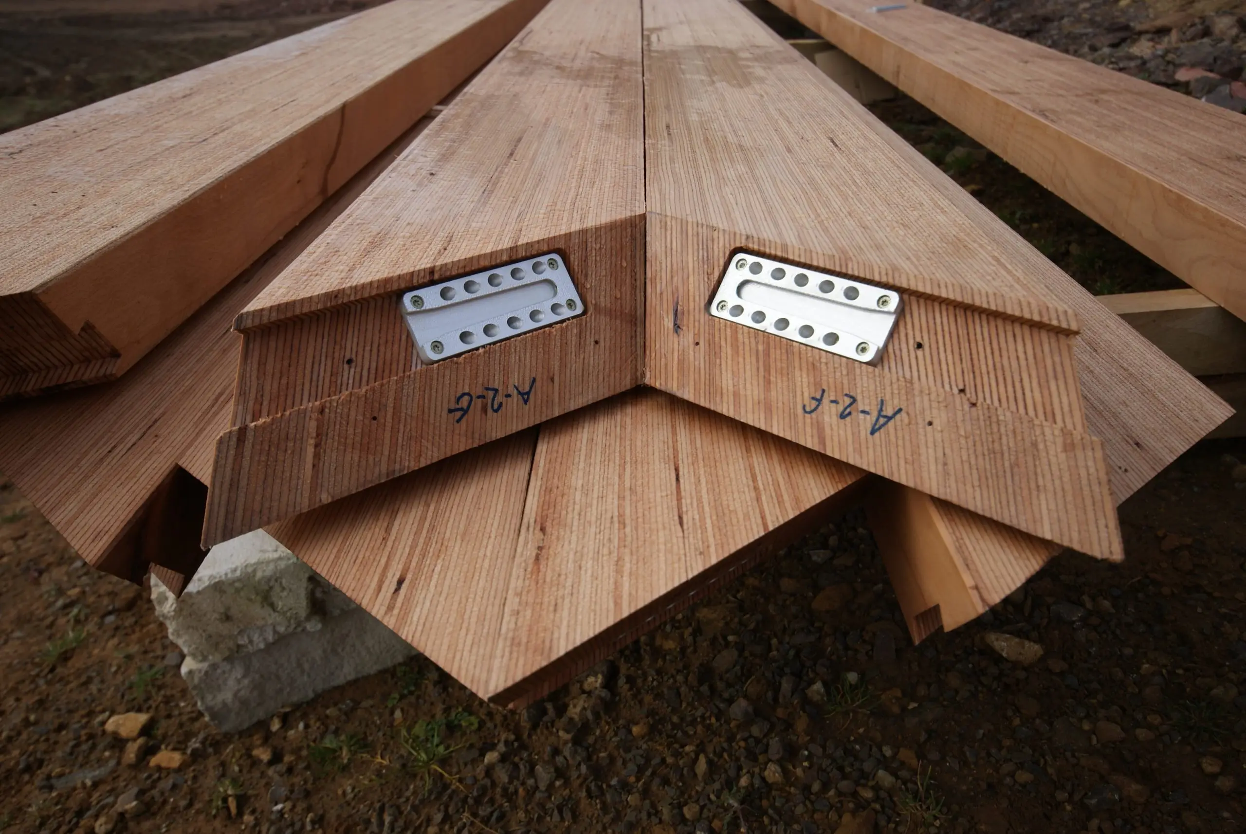 This contemporary diagrid roof frame is made from BauBuche, a beech Laminated Veneer Lumber (LVL) which is an engineered timber product made by Pollmeier in Germany. We were the first company in the UK to use this extraordinary material which is immensely strong and dimensionally stable. Due to the way it’s manufactured it can be supplied in long lengths and different widths; its inherent strength allows unusually slender sections to be used. The frame geometry was cut accurately by hand with power tools. We incorporated modern connection systems that are housed within the ends of each member using pairs of interlocking dovetail plates held with an array of special screws with formed stainless steel corner reinforcement brackets. The timber was supplied with a machine planed finish which we sanded and oiled prior to installation.