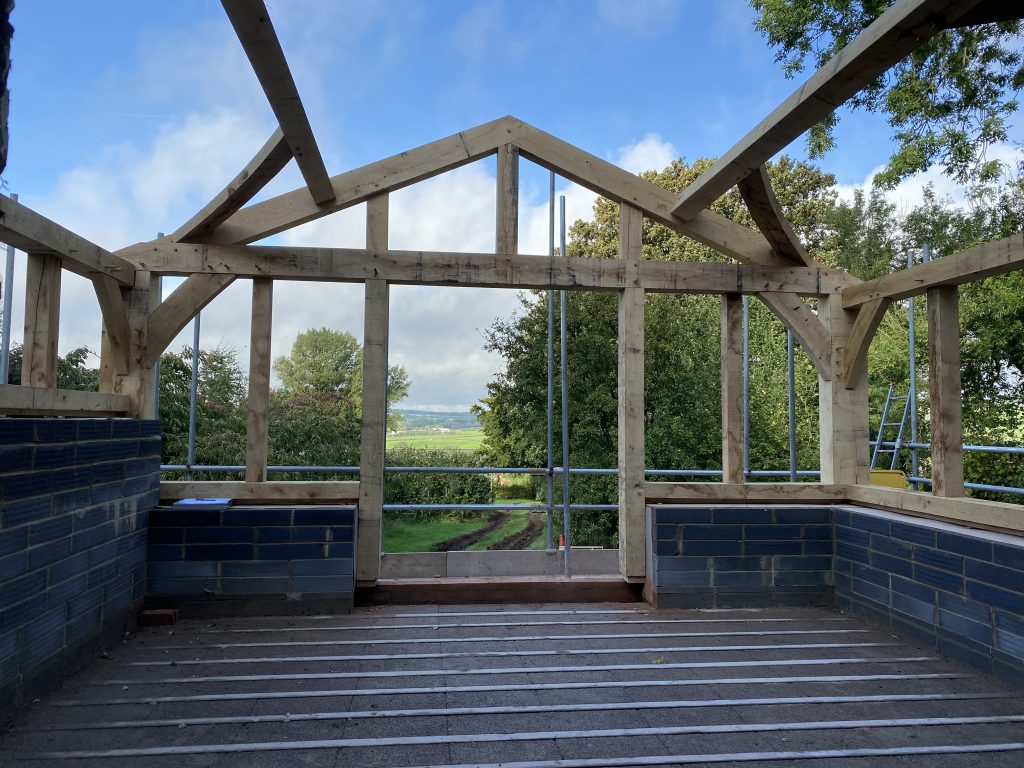 Site installation of The Croft green oak frame garden room project to the rear of the clients cottage complete.